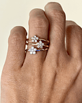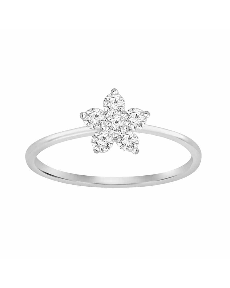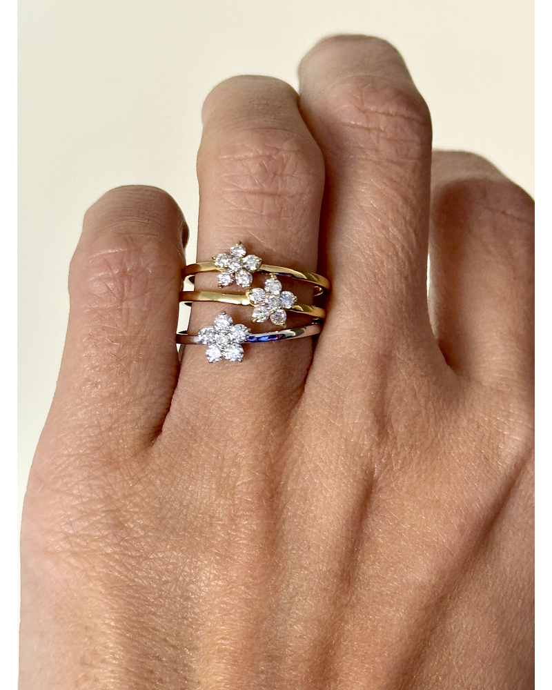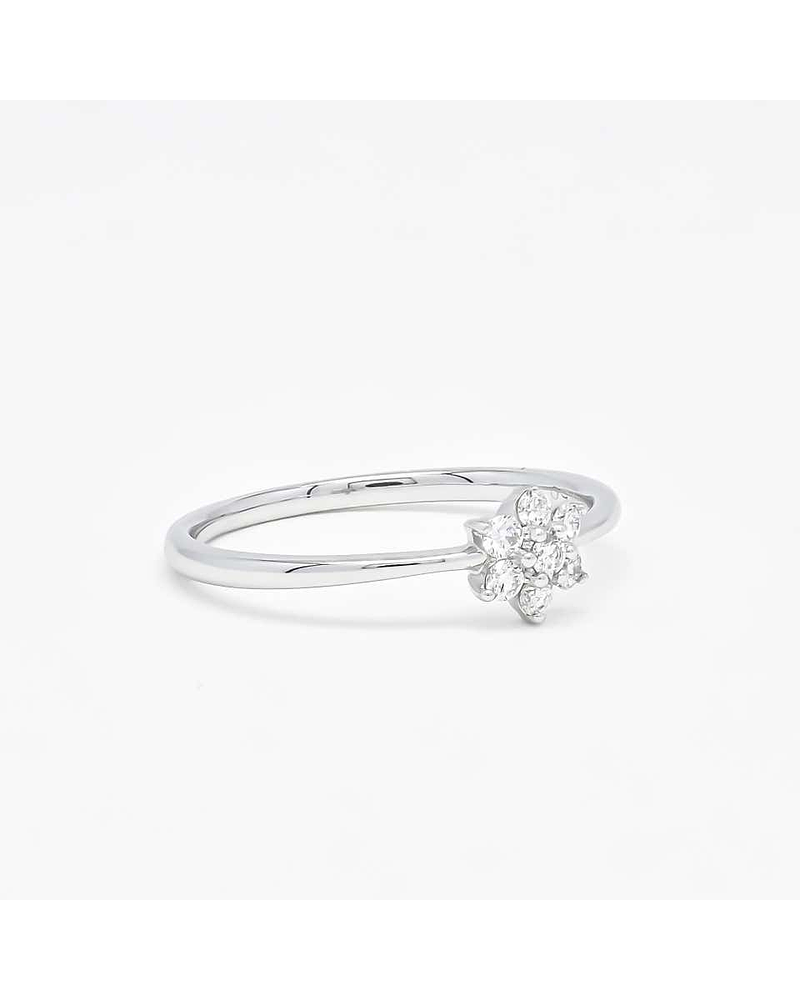 Hermoso y delicado Anillo Compuesto por Diamantes en forma de roseta, en Oro Blanco 18k.