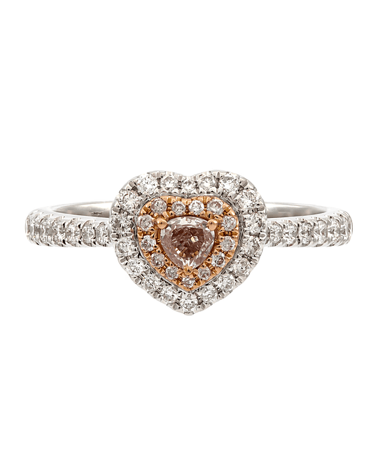 Anillo Corazón con Diamantes Rosados Naturales y Diamantes Blancos en Oro Blanco 18K