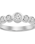 Este anillo medio cintillo es la perfecta fusión entre tradición y vanguardia. 9 diamantes naturales de corte brillante, engastados en Bisel, generando que cada piedra se destaque. Elaborado en oro blanco de 18k, es una joya moderna, atemporal y sofisticada.