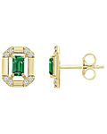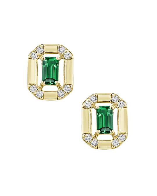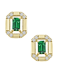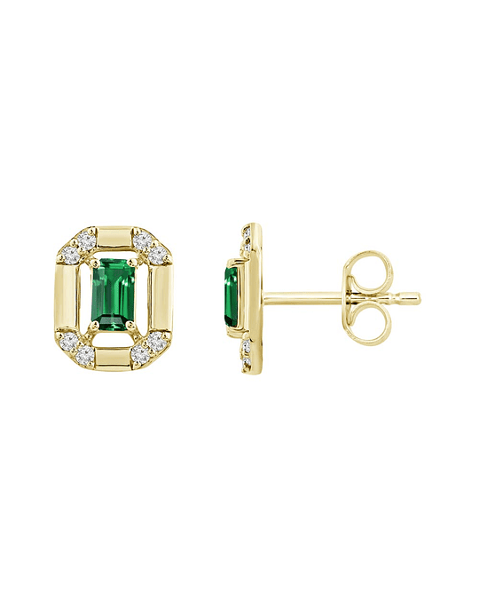 Preciosos Aros Rectangulares con Esmeraldas corte Baguette y Brillantes, en Oro Amarillo 18K.