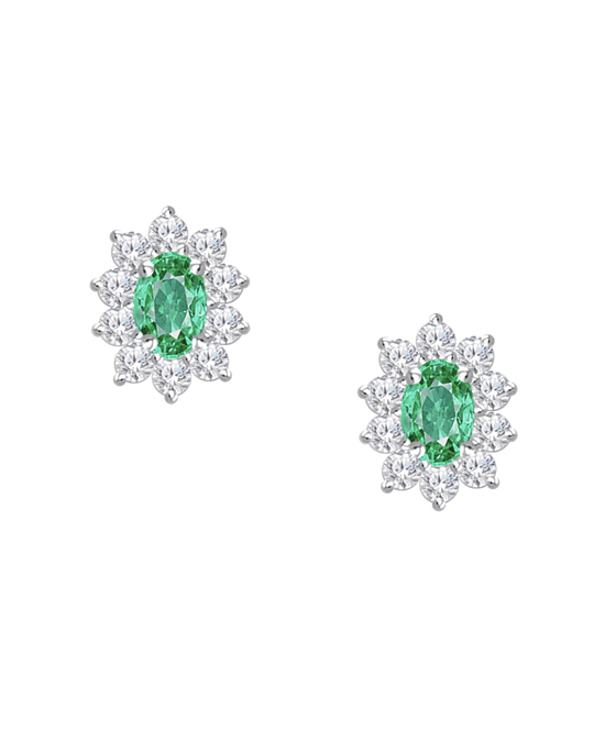 Aros Rosetas Ovalados Esmeraldas y Diamantes en Oro Blanco 18K