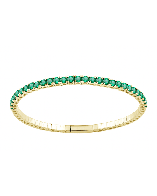Bellísima pulsera tipo esclava Flexible, última tecnología en Joyas , con línea de Esmeraldas en Oro Amarillo 18K.