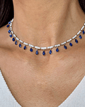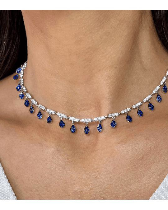 Hermoso Collar tipo Choker de Diamantes, con Zafiros Azules colgantes en Oro Blanco 18K, realmente hermoso regalo o autoregalo 😍