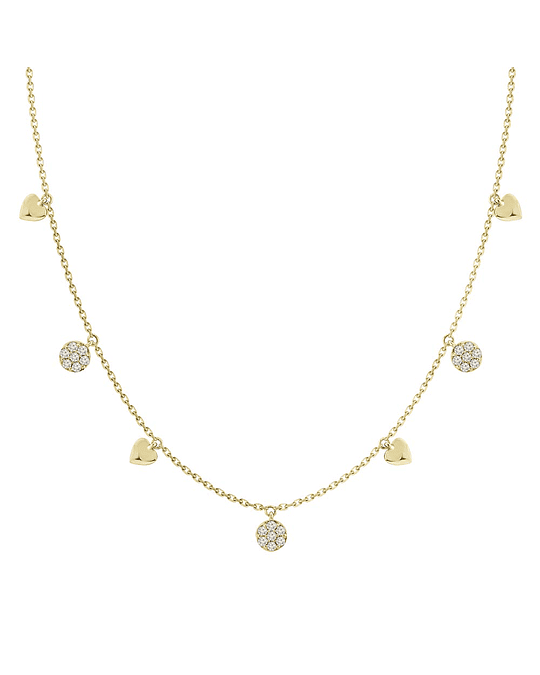 Hermoso Collar compuesto por Moneditas con diamantes , intercalados con corazones en terminación pulido brillante, en Oro Amarillo 18K, realmente hermoso regalo o autoregalo 😍