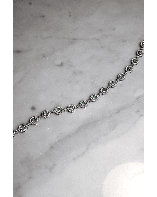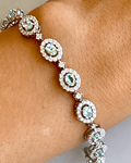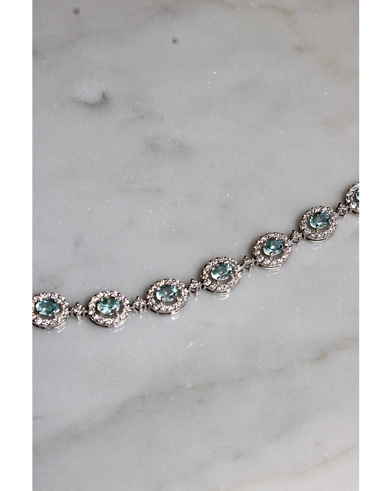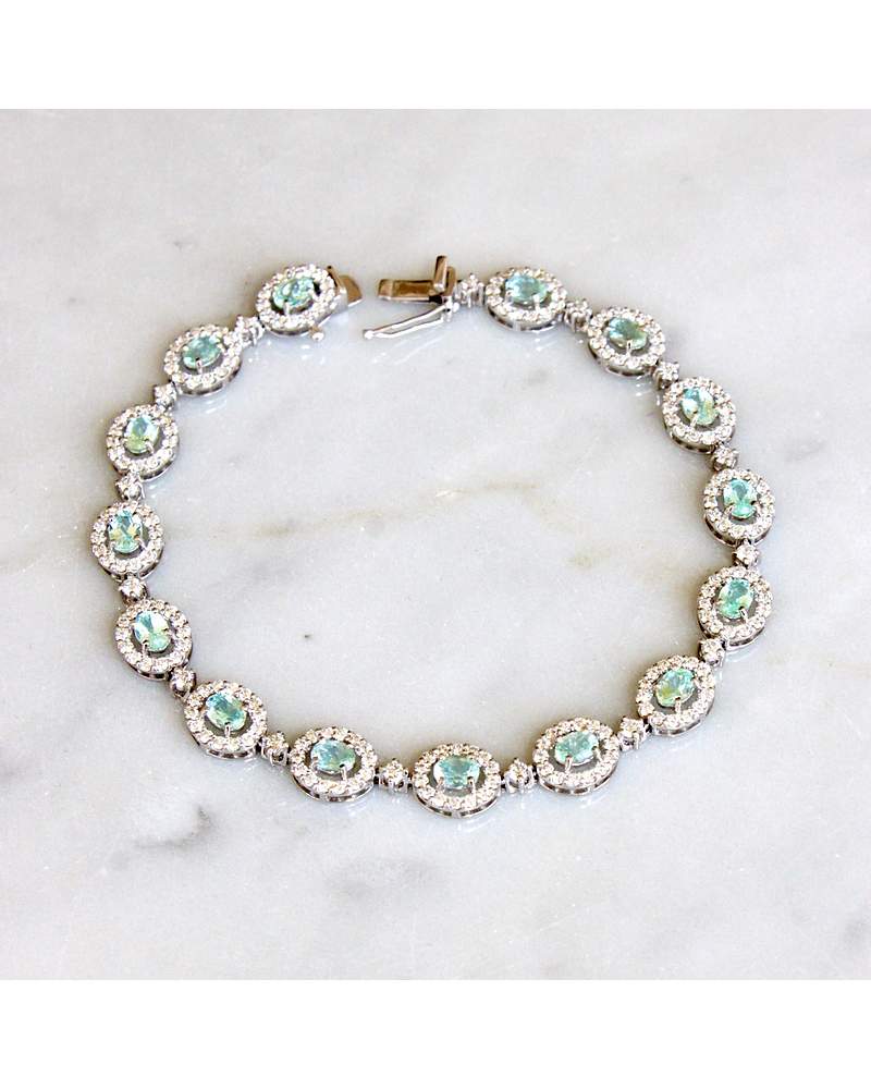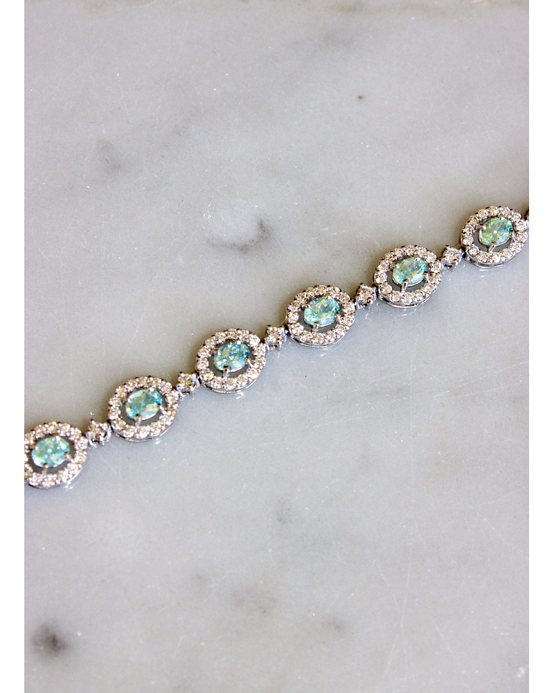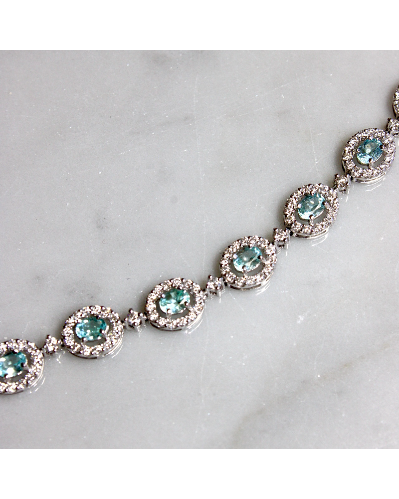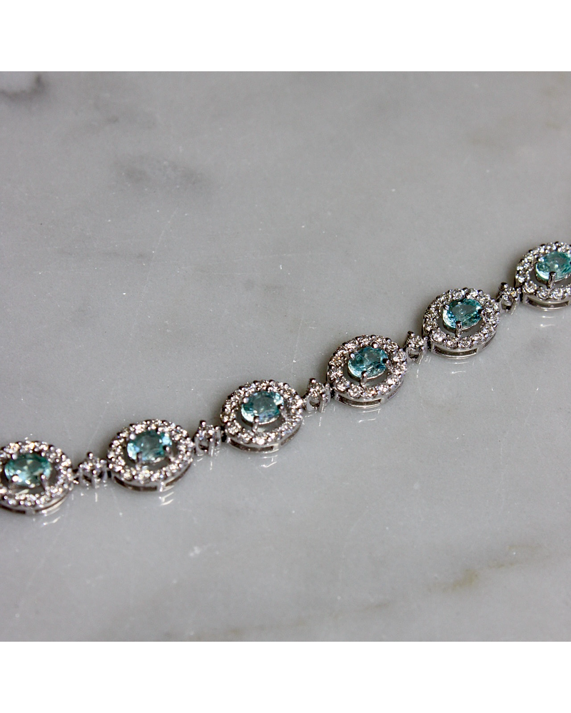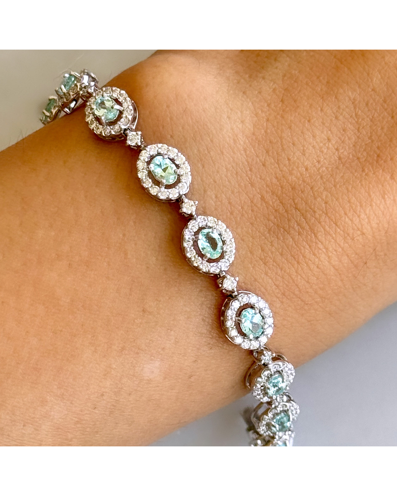 Espectacular Brazalete compuesto por Hermosas Turmalinas Paraíba Naturales, Ovaladas, rodeadas de Diamantes, en Platino.