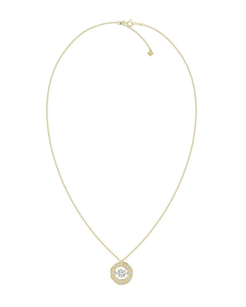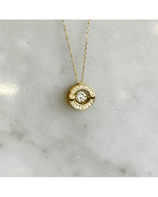 Precioso y Exclusivo Punto de Luz 2.0 con Dancing Diamond, cuenta con un Diamante Central con Movimiento Autónomo, se mueve con tu movimiento, lo que genera un brillo increíble y espectacular. En Oro Amarillo 18K