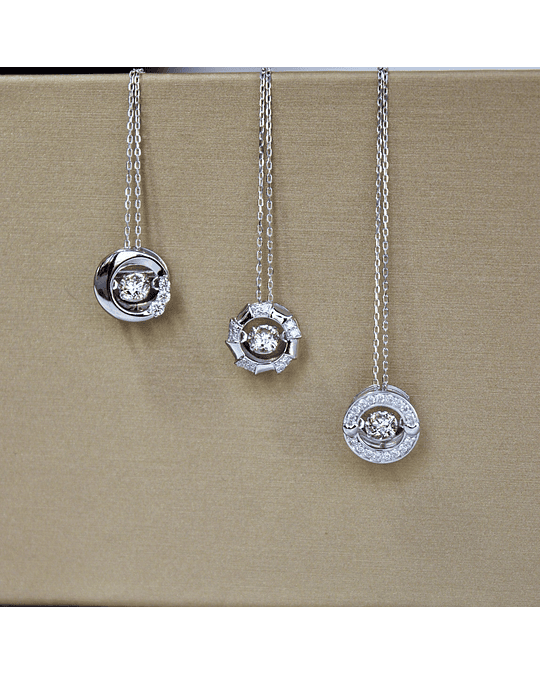 Precioso y Exclusivo Punto de Luz 2.0 con Dancing Diamond, cuenta con un Diamante Central con Movimiento Autónomo, se mueve con tu movimiento, lo que genera un brillo increíble y espectacular. En Oro Blanco y Amarillo 18K