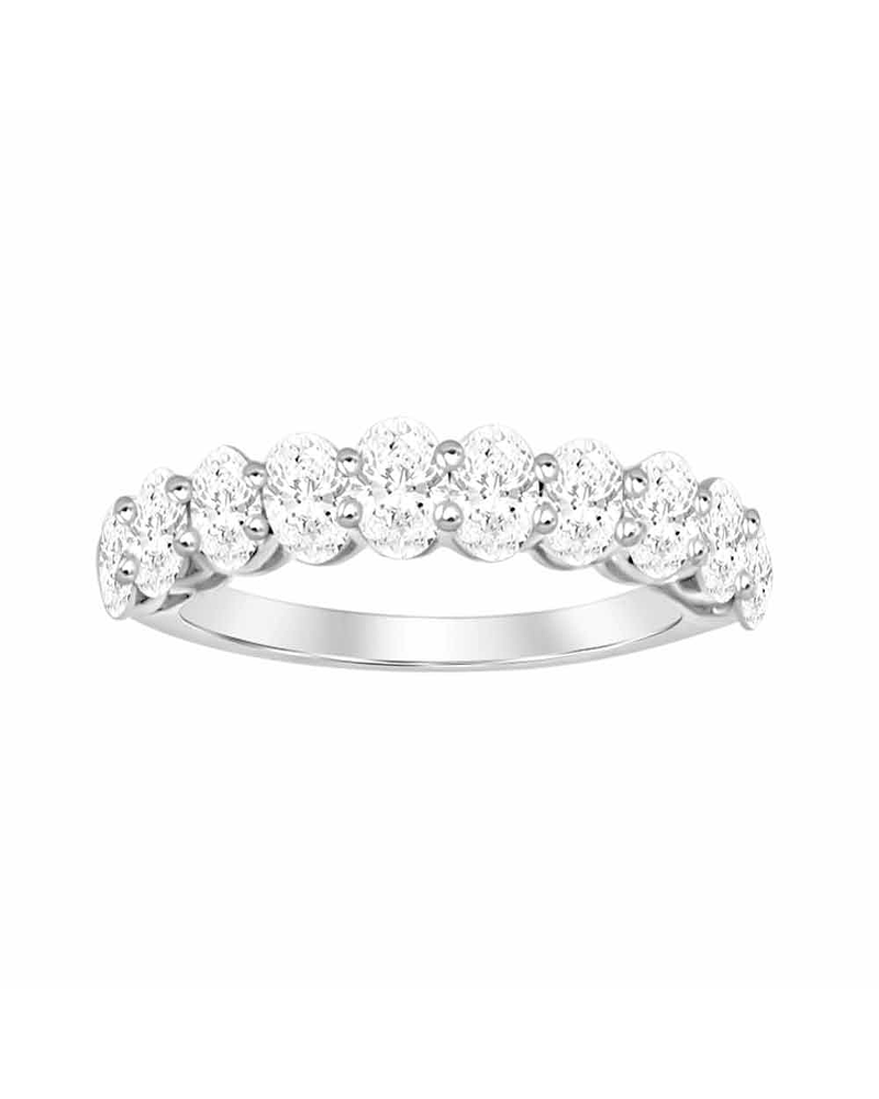 Clásico Anillo Medio Cintillo con 11 Diamantes Corte Oval, completando 103 puntos en total o 1.03 Quilates engastados en grifa y en Oro Blanco 18K