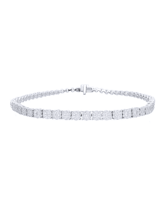 Hermosa pulsera modelo Rosetas, con 1.3 Ct en Diamantes Naturales, engastados de forma invisible, diseño para que se vean más grandes, en Oro Blanco 18K