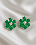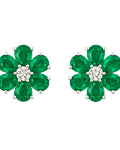 Bellísimos Aros Flor, con Esmeraldas Naturales corte Gota y Diamantes corte Brillante, en Oro Blanco 18K.