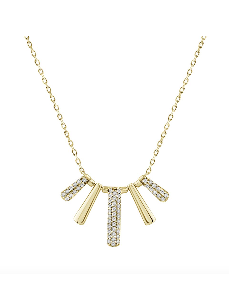 Precioso y Exclusivo Collar de con barritas verticales de diferentes largos, con Diamantes corte brillantes, en Oro Amarillo 18K